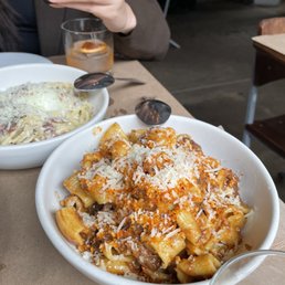 Pasta is the way to my heart, and I'm glad Osteria La Buca was so close to my workplace! FLAVOR (4.75/5): 1. ARTICHOKES: Tell me why these are the best artichokes I've ever had? Wow. The lemon oil packs a punch... such a blast of flavor in that initial bite. And the texture as well! Some portions are crispier than others, so you get a nice range. One of the things on the menu that blew me away, as I've never had artichokes prepared like this before. 2. BURRATA: The burrata was delicious. Such a great pairing of sweet and savory with the grapes. This must be how Remy felt in Ratatouille 3. GUANCIALE PIZZA: The pizza was good! I like the crust, sauce, and cheese ratio. Good for sharing. 4. CACIO PEPE ARANCINI: The arancini is yummy! Great appetizer to start. 5. PAPPARDELLE BOLOGNESE: When it comes to pasta I've had a lot, and this pappardelle stood out to me. The pasta was cooked perfectly, and the sauce was rich and had so much depth - all without being too heavy. Wonderful. 6. TIRAMISU: The desserts are where it all started to fall flat to me. As far as tiramisu goes, this was okay. I wish the ladyfingers soaked up more of the coffee. 7. SALTED CARAMEL BUTTERSCOTCH BOUDIN: This was good texture-wise, but super sweet. I preferred the tiramisu. SERVICE (5/5): Service was great! My favorite part was the crayons they gave us so we could draw on the table. AMBIENCE (5/5): Came for lunch and it was a pleasant atmosphere; I imagine Osteria La Buca would be good for a date night dinner as well. TAKEAWAYS: I really enjoyed my time at Osteria La Buca and would definitely come back! I have my eye on the branzino and can't wait to try their other pastas as well.