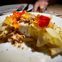 This was my first time at Osteria La Buca. I had driven by many a time and most people I knew had gone, so I figured it was time to check it out. I loved the ambience inside, soft lighting, hardwood floors and brick walls. The music was perfect, you could still hear it and enjoy it while chatting at your table. Our server was incredibly nice as well as very patient as we looked over the menu and asked questions. We went to with a seasoned vet who had been there a ton so we let them order the appetizers - Brussels sprouts, the artichokes and scallop crudo. My personal favorite was the artichokes, oh my goodness. My friends tried the branzino, the bucatini carbonara and the mushroom pizza. I had the spring pea ravioli. All were excellent, I may have found a new favorite spot. Good for groups, family and date night!
